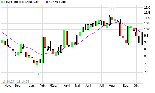Mit dem Anstieg auf 9,90 EUR hat die Fever-Tree-Aktie am 17.10.2025 die 50-Tage-Linie nach oben gekreuzt.