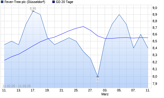 Mit dem Rücksetzer auf 8,45 EUR hat die Fever-Tree-Aktie am 10.03.2025 die 20-Tage-Linie nach unten gekreuzt.
