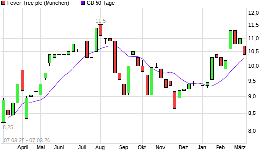 Mit dem Rücksetzer auf 10,10 EUR hat die Fever-Tree-Aktie am 06.03.2026 die 50-Tage-Linie nach unten gekreuzt.