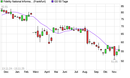 Mit dem Anstieg auf 56,03 EUR hat die Fidelity National Information Services-Aktie am 12.11.2025 die 50-Tage-Linie nach oben gekreuzt.