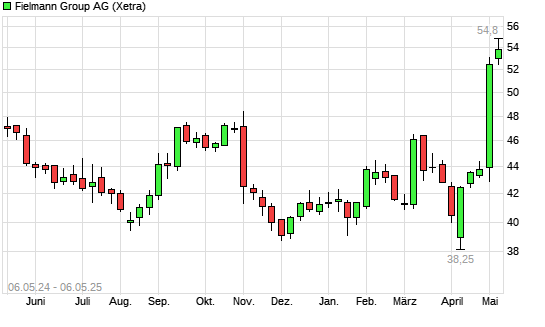 Mit dem Anstieg auf 54,20 EUR hat die Fielmann-Aktie (ISIN DE0005772206) am 05.05.2025 ein neues 3-Jahres-Hoch erreicht und damit den Kurs vom 02.05.2025 eingestellt.