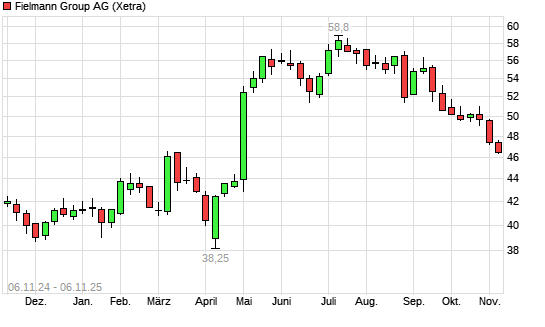 Mit dem Rücksetzer auf 46,50 EUR hat die Fielmann-Aktie (ISIN DE0005772206) am 05.11.2025 ein neues 6-Monats-Tief erreicht und damit den Kurs vom 04.11.2025 eingestellt.