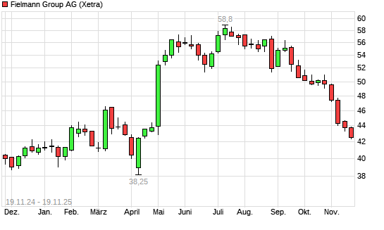 Mit dem Rücksetzer auf 42,20 EUR hat die Fielmann-Aktie (ISIN DE0005772206) am 18.11.2025 ein neues 6-Monats-Tief erreicht und damit den Kurs vom 14.11.2025 eingestellt.