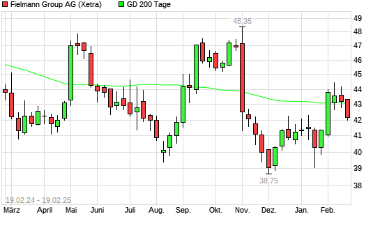 Mit dem Anstieg auf 43,00 EUR hat die Fielmann-Aktie am 18.02.2025 die 200-Tage-Linie nach oben gekreuzt.