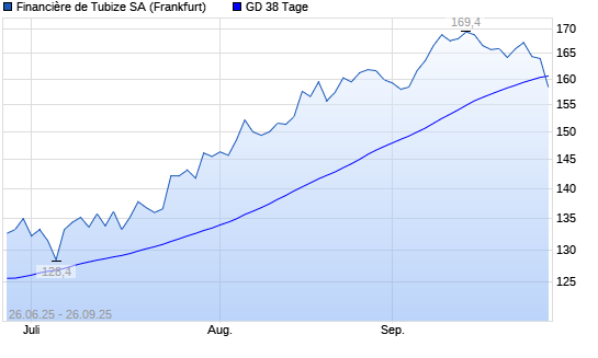 Mit dem Rücksetzer auf 160,40 EUR hat die Financière de Tubize-Aktie am 25.09.2025 die 38-Tage-Linie nach unten gekreuzt.