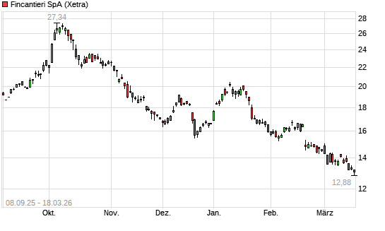 Mit dem Rücksetzer auf 13,14 EUR hat die Fincatieri-Aktie (ISIN IT0005599938) am 17.03.2026 ein neues 6-Monats-Tief erreicht und damit den Kurs vom 16.03.2026 eingestellt.