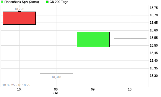 Mit dem Anstieg auf 18,85 EUR hat die FinecoBank-Aktie am 15.10.2025 die 200-Tage-Linie nach oben gekreuzt.