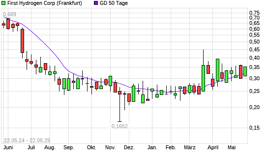 Mit dem Anstieg auf 0,34 EUR hat die First Hydrogen-Aktie am 21.05.2025 die 50-Tage-Linie nach oben gekreuzt.