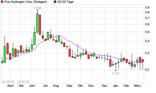 Mit dem Anstieg auf 0,23 EUR hat die First Hydrogen-Aktie am 11.03.2026 die 50-Tage-Linie nach oben gekreuzt.