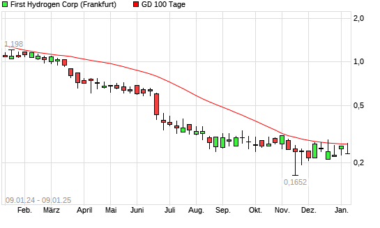 Mit dem Rücksetzer auf 0,26 EUR hat die First Hydrogen-Aktie am 08.01.2025 die 100-Tage-Linie nach unten gekreuzt.