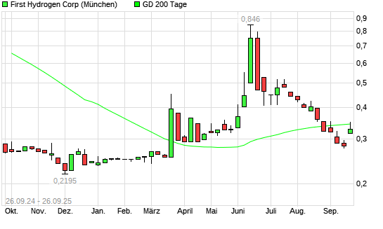 Mit dem Rücksetzer auf 0,32 EUR hat die First Hydrogen-Aktie am 25.09.2025 die 200-Tage-Linie nach unten gekreuzt.