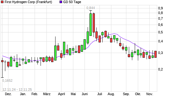Mit dem Rücksetzer auf 0,29 EUR hat die First Hydrogen-Aktie am 11.11.2025 die 50-Tage-Linie nach unten gekreuzt.