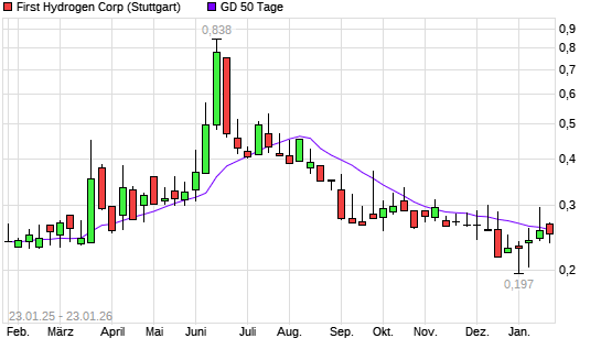 Mit dem Rücksetzer auf 0,23 EUR hat die First Hydrogen-Aktie am 22.01.2026 die 50-Tage-Linie nach unten gekreuzt.