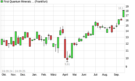Mit dem Anstieg auf 17,02 EUR hat die First Quantum Minerals-Aktie (ISIN CA3359341052) am 23.09.2025 ein neues 12-Monats-Hoch erreicht und damit den Kurs vom 22.09.2025 eingestellt.