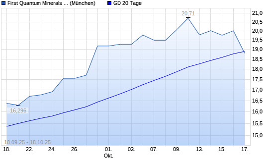 Mit dem Rücksetzer auf 18,86 EUR hat die First Quantum Minerals-Aktie am 17.10.2025 die 20-Tage-Linie nach unten gekreuzt.