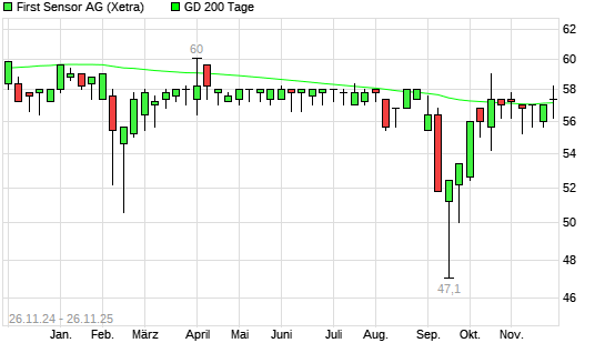 Mit dem Anstieg auf 57,40 EUR hat die First Sensor-Aktie am 25.11.2025 die 200-Tage-Linie nach oben gekreuzt.