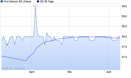 Mit dem Anstieg auf 57,80 EUR hat die First Sensor-Aktie am 09.06.2025 die 38-Tage-Linie nach oben gekreuzt.