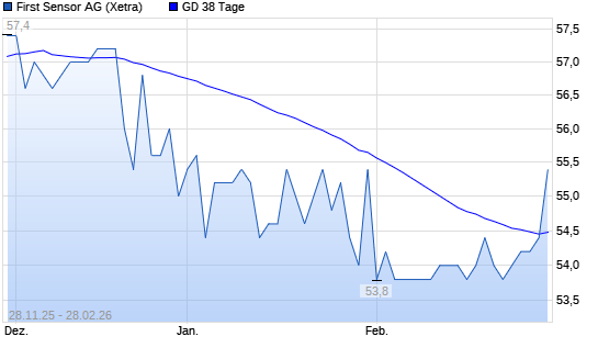 Mit dem Anstieg auf 54,00 EUR hat die First Sensor-Aktie am 27.02.2026 die 38-Tage-Linie nach oben gekreuzt.