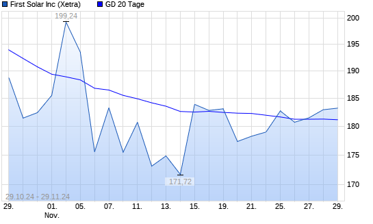 Mit dem Anstieg auf 183,74 EUR hat die First Solar-Aktie am 28.11.2024 die 20-Tage-Linie nach oben gekreuzt.