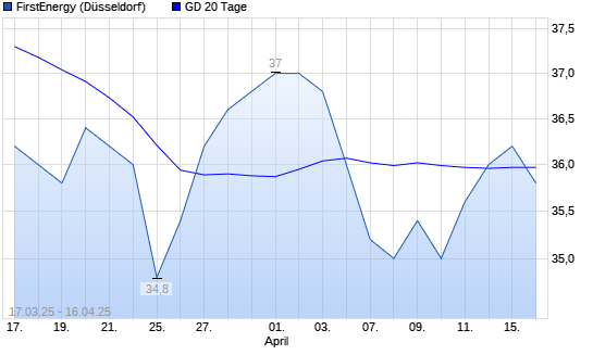 Mit dem Anstieg auf 36,00 EUR hat die FirstEnergy-Aktie am 15.04.2025 die 20-Tage-Linie nach oben gekreuzt.
