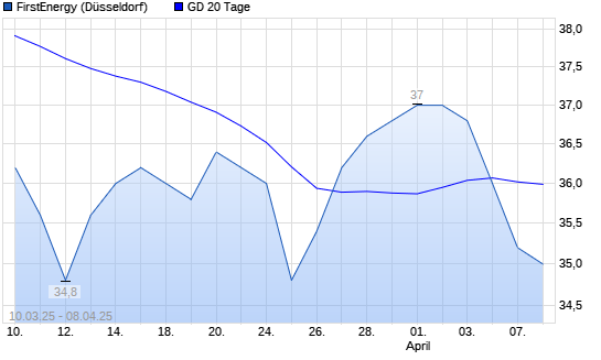 Mit dem Rücksetzer auf 35,20 EUR hat die FirstEnergy-Aktie am 07.04.2025 die 20-Tage-Linie nach unten gekreuzt.
