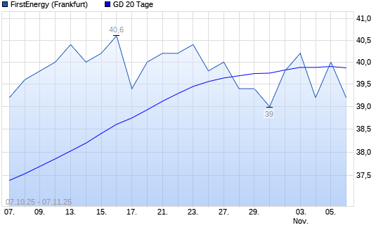 Mit dem Rücksetzer auf 39,20 EUR hat die FirstEnergy-Aktie am 06.11.2025 die 20-Tage-Linie nach unten gekreuzt.