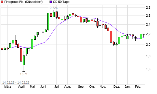 Mit dem Anstieg auf 2,16 EUR hat die Firstgroup-Aktie am 13.02.2026 die 50-Tage-Linie nach oben gekreuzt.