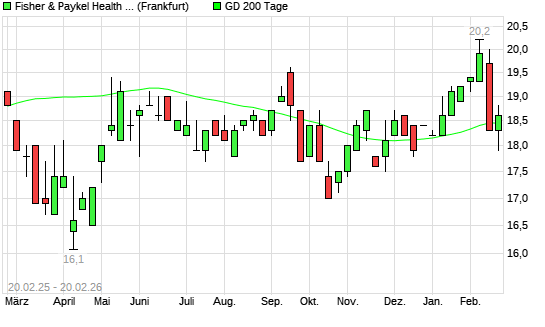 Mit dem Anstieg auf 18,80 EUR hat die Fisher & Paykel Health-Aktie am 19.02.2026 die 200-Tage-Linie nach oben gekreuzt.