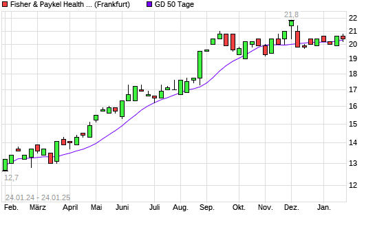 Mit dem Anstieg auf 21,40 EUR hat die Fisher & Paykel Health-Aktie am 23.01.2025 die 50-Tage-Linie nach oben gekreuzt.