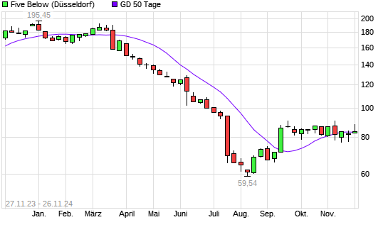 Mit dem Anstieg auf 86,70 EUR hat die Five Below,-Aktie am 25.11.2024 die 50-Tage-Linie nach oben gekreuzt.