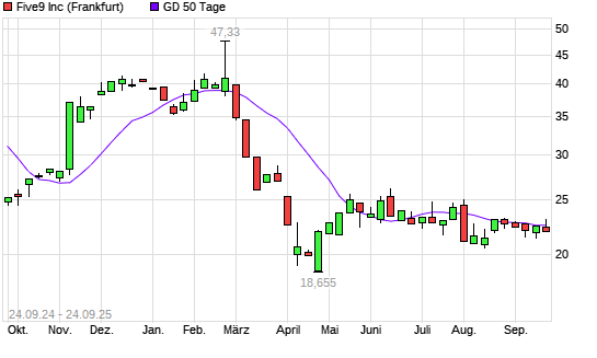 Mit dem Anstieg auf 22,98 EUR hat die Five9-Aktie am 23.09.2025 die 50-Tage-Linie nach oben gekreuzt.