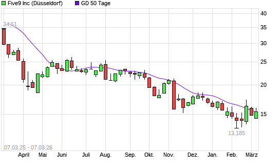 Mit dem Anstieg auf 15,63 EUR hat die Five9-Aktie am 06.03.2026 die 50-Tage-Linie nach oben gekreuzt.