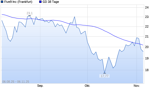 Mit dem Rücksetzer auf 19,79 EUR hat die Five9-Aktie am 05.11.2025 die 38-Tage-Linie nach unten gekreuzt.