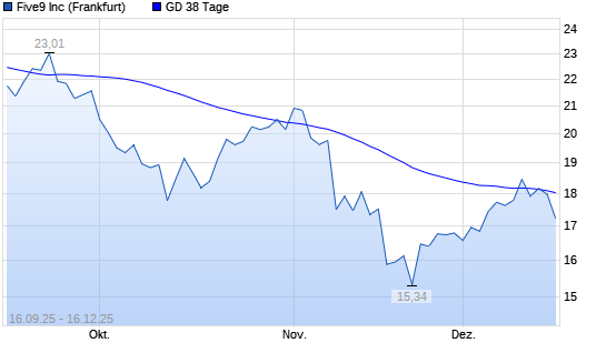 Mit dem Rücksetzer auf 17,88 EUR hat die Five9-Aktie am 15.12.2025 die 38-Tage-Linie nach unten gekreuzt.