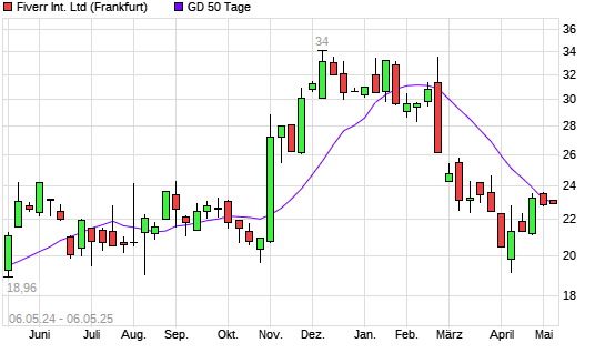 Mit dem Anstieg auf 23,01 EUR hat die Fiverr International-Aktie am 05.05.2025 die 50-Tage-Linie nach oben gekreuzt.
