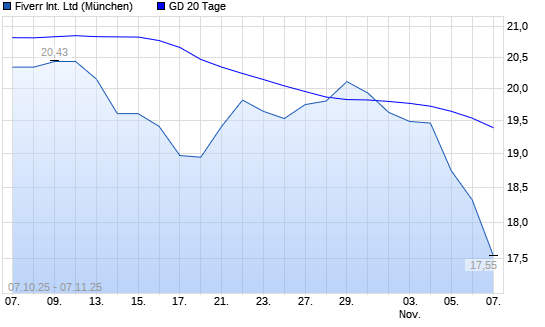 Mit dem Rücksetzer auf 17,72 EUR hat die Fiverr International-Aktie am 06.11.2025 die 20-Tage-Linie nach unten gekreuzt.
