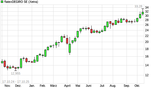 Mit dem Anstieg auf 32,42 EUR hat die Flatexdegiro-Aktie (ISIN DE000FTG1111) am 16.10.2025 ein neues All-Time-High erreicht und damit den Kurs vom 15.10.2025 eingestellt.