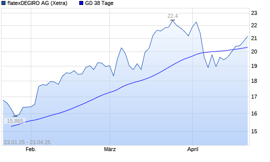 Mit dem Anstieg auf 20,80 EUR hat die Flatexdegiro-Aktie am 22.04.2025 die 38-Tage-Linie nach oben gekreuzt.