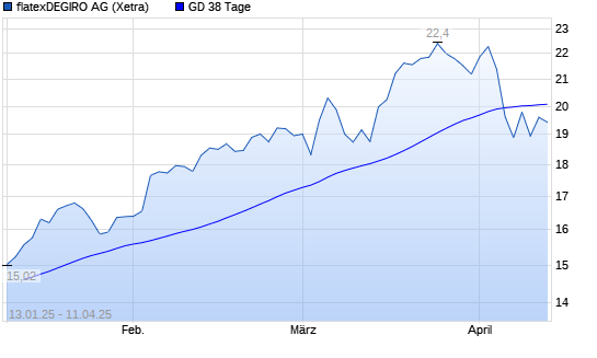 Mit dem Rücksetzer auf 19,66 EUR hat die Flatexdegiro-Aktie am 10.04.2025 die 38-Tage-Linie nach unten gekreuzt.