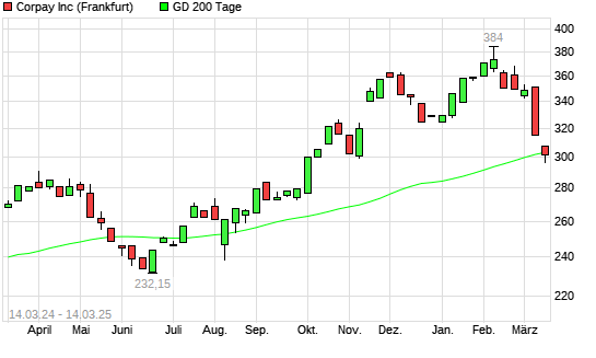 Mit dem Anstieg auf 305,80 EUR hat die Fleetcor Technologies-Aktie am 13.03.2025 die 200-Tage-Linie nach oben gekreuzt.