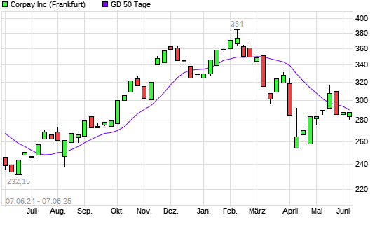 Mit dem Anstieg auf 288,00 EUR hat die Fleetcor Technologies-Aktie am 06.06.2025 die 50-Tage-Linie nach oben gekreuzt.