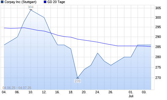 Mit dem Rücksetzer auf 284,00 EUR hat die Fleetcor Technologies-Aktie am 03.07.2025 die 20-Tage-Linie nach unten gekreuzt.