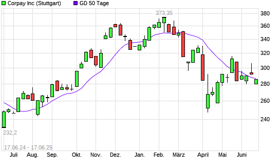 Mit dem Rücksetzer auf 278,00 EUR hat die Fleetcor Technologies-Aktie am 16.06.2025 die 50-Tage-Linie nach unten gekreuzt.