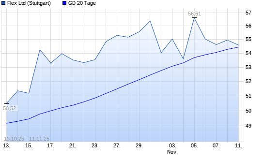 Mit dem Anstieg auf 54,46 EUR hat die Flex-Aktie am 10.11.2025 die 20-Tage-Linie nach oben gekreuzt.