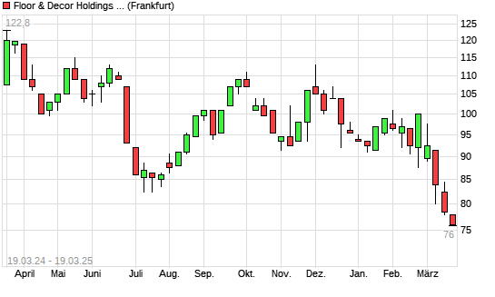 Mit dem Rücksetzer auf 76,50 EUR hat die Floor & Decor Holdings-Aktie (ISIN US3397501012) am 18.03.2025 ein neues 12-Monats-Tief erreicht und damit den Kurs vom 13.03.2025 eingestellt.