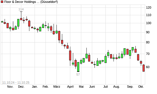 Mit dem Rücksetzer auf 57,00 EUR hat die Floor & Decor Holdings-Aktie (ISIN US3397501012) am 10.10.2025 ein neues 5-Jahres-Tief erreicht und damit den Kurs vom 17.06.2022 eingestellt.