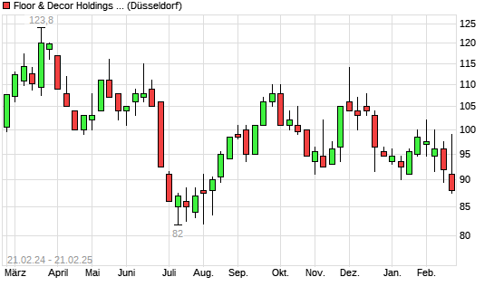 Mit dem Rücksetzer auf 87,50 EUR hat die Floor & Decor Holdings-Aktie (ISIN US3397501012) am 20.02.2025 ein neues 6-Monats-Tief erreicht und damit den Kurs vom 07.01.2025 eingestellt.