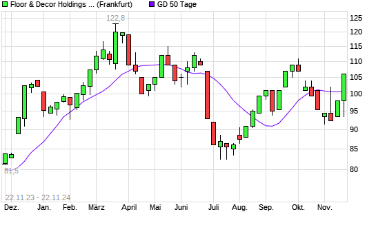 Mit dem Anstieg auf 101,00 EUR hat die Floor & Decor Holdings-Aktie am 21.11.2024 die 50-Tage-Linie nach oben gekreuzt.