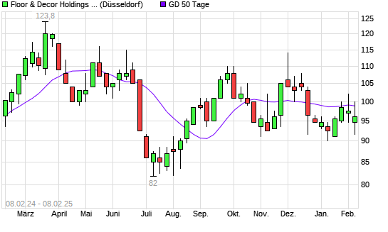 Mit dem Rücksetzer auf 97,00 EUR hat die Floor & Decor Holdings-Aktie am 07.02.2025 die 50-Tage-Linie nach unten gekreuzt.