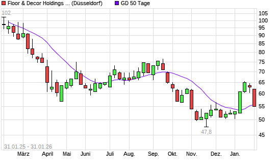 Mit dem Rücksetzer auf 55,00 EUR hat die Floor & Decor Holdings-Aktie am 30.01.2026 die 50-Tage-Linie nach unten gekreuzt.